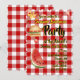 Um clássico gingham vermelho e branco é o fundo para este convite de festas de verão animado com texto destacado a preto e amarelo com hambúrguer e melancia para molhar o apetite dos seus convidados. Convite de festas totalmente personalizável.