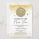 Convite de festas de Véspera de ano novo da Bola Disco Sparkly Dourada