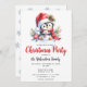 Crie Convites de festas únicos de Natal com um pinguim fofo num chapéu vermelho de Papai Noel e um cachecol sentados com um pequeno boneco de neve. A parte de trás é decorada com flocos de neve azuis. Estes convites de Natal festivos são desenhados sobre um fundo branco. O modelo facilita a personalização do texto para o nome da família, data e hora, endereço, RSVP e código de vestimenta da festa. Se quiser fazer mais mudanças, você pode usar a ferramenta design Zazzle.