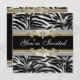 Modelo de convite de festas de zebra preto e ouro elegantes. Este belo convite de festas zebra é facilmente personalizado para o seu evento, simplesmente escolhendo o botão "Personalizar!" para começar a adicionar detalhes do evento, estilo de fonte, tamanho e cor de fonte e texto. Observe que todos os adesivos, cartões e designs de convite que você encontrará no Zazzle são gráficos impressos sem joias reais, arcos, levantados, gravados, ou peças ou peças adicionadas.