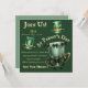 Três bonitos chapéus de Leprechaun adorados com arcos bonitos e trevas cobrir a frente deste convite de festas de Dia do Paddy de Ruas personalizável. Adicione todos os seus detalhes aos seus amigos, vizinhos e família e comemore todas as coisas irlandesas. O reverso deste cartão é verde-menta.