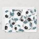 Este convite de festas de futebol bonito apresenta bolas de futebol preto e branco organizadas aleatoriamente nas bordas direita e superior da frente e cobrindo a parte posterior do convite - personalize os detalhes da festa em um fundo branco - por katz_d_zynes