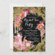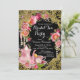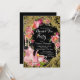 Convite elegante para festa do chá com rosa cor-de-rosa bonita, pérolas elegantes e bule e xícara de chá cor-de-rosa em um belo fundo preto com redemoinho dourado brilhante. Este convite elegante para chá de noiva é facilmente personalizado para o seu evento, adicionando seus detalhes no estilo de letra e cor, e texto de sua escolha. Você também pode alterar a cor do fundo. Este é um design impresso sem pérolas reais, brilho, etc.