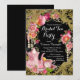 Convite Festa do Chá da Rosa com Brilho Preto e Dourado