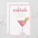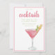 Este convite de festa com coquetel Cosmopolitan chique é a escolha definitiva para um evento sofisticado e moderno. O design elegante apresenta um copo de cosmopolitan com a icônica tonalidade rosa do coquetel, tornando-o a escolha perfeita para uma festa sofisticada e atual. Certifique-se de incluir todos os detalhes necessários, como data, hora e local do seu evento, para que seus convidados possam marcar seus calendários. Seu convite certamente irá impressionar e entusiasmar seus convidados para uma noite de glamour e diversão!