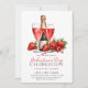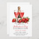 Calma Moderna Minimalista Aquarela Floral Rosa de Botânica Champanhe Vinho Morangos Morangos Cocktails Dia de Galentine Brancas de café damas celebrando senhoras solteiros escadarias de solteiros celebrando entre namorados convites de festas Mensagem Vermelha para mais personalização