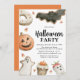 Convites de festas para o Dia das Bruxas bonitos com detalhes da sua festa cercados por uma rosquinha de aquarela, biscoitos, cupcakes, morango coberto de chocolate e milho doce. O convite para a festa do Dia das Bruxas é perfeito para as festas de Halloween!