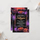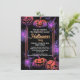 Raios temáticos roxos e laranja e abóboras brilhantes Jack-O-Lanterna com tema decorativo de desenho de giz. Convide convidados para uma festa de fantasia de halloween com este convite impresso personalizado. Gráficos de ai generativos na moda personalizados com detalhes personalizados do seu partido. Excelente para um partido adulto, familiar ou adolescente que é apenas ligeiramente assustador.