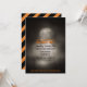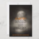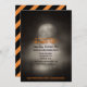 Convites de festas de Dia das Bruxas Loucas - O fundo é assombrado, cemitério antigo com lápides à luz da lua com uma lua de cheio. Lê 'Você foi convocado para uma festa de Halloween' em cores de Halloween preto e laranja. Detalhes da festa de Halloween, incluindo informações de RSVP, em preto. Estilo assustador, a inscrição no Gótico no final diz "Vista o traje assustador adequado para evitar ser aborrecido". A parte de trás tem fundo diagonal preto e laranja. Use o botão Personalizar para alterar a aparência - estilos de fonte, tamanhos, cores ou posicionamento. Convincentes de Halloween, tradicionais e assustadores, prontos para serem personalizados com seus próprios detalhes de diversão.