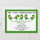Convites criativos de festa do Dia de São Patrício irlandês com leprechaun de desenho animado engraçado dançando a giga.