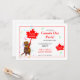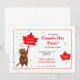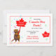 Um convite do Dia do Canadá com um personagem de castor fofo segurando um sinal em forma de folha de bordo que diz "Você está convidado!"