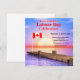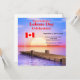 Um convite de festa de fim de verão do Dia do Trabalho com um pôr do sol e pier e bandeira canadense. Altere o texto de exemplo para o seu próprio endereço, etc. para se adequar ao seu evento.