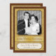 Celebre aquele casal especial com este convite de festas de Ouro Aniversário. A foto deles se senta sobre um fundo com padrão de damasco dourado com uma borda escura e burlada. (Certifique-se de substituir uma foto grande e de alta resolução por esta imagem frontal). Os seus nomes e a data do casamento (ou qualquer outro texto) são assinalados na placa abaixo. Em seguida, mostre-os como eles estavam na época e agora estão nas costas com todas as informações do evento abaixo. Produtos correspondentes disponíveis.