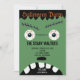 Celebre seu Dia das Bruxas assustador e convide amigos e família com esta mão desenhada olhal assustadora e face monstruosa com cicatrizes em laranja, roxo e verde com morcegos pretos nas costas. O fundo da cor é totalmente editável, você pode mover os morcegos.