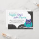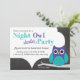 Convite de aniversário de coruja noturna fofo. Perfeito para a primeira noite de dormir fora!