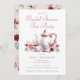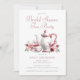 Um elegante convite de festas de chá chá de panela floral de aquarela que pode ser personalizado com a inclusão dos detalhes do seu chá de panela. O convite apresenta um elegante bule de aquarela, xícara e pires cercado por flores vermelhas e cor-de-rosa. O design é elegante e moderno.