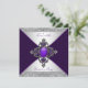 Convite de festa de 40 anos elegante com jóia prateada e roxa e envolvimento de veludo rico para mulher.