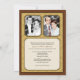 Celebre aquele casal especial com este convite de festa de Aniversário de Bodas de Ouro. A foto deles está posicionada contra um fundo com padrão dourado damasco com uma moldura cor bordô escuro. (Certifique-se de substituir por uma foto grande e de alta resolução para esta imagem da frente). Os nomes deles e a data do casamento (ou qualquer outro texto) são realçados na placa abaixo. Em seguida, mostre-os como eram então e como são agora no verso com todas as informações do evento abaixo. Produtos combinando disponíveis.