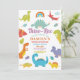Convite de festa de menina ou menino com design perfeito de Três Rex Dinossauro. Parte de trás incluída.