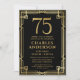 Este fabuloso convite de festas surpresa de 75 anos, preto e ouro, com o número 75 em ouro, rodeado por um desenho de arte em ouro na frente e sua foto favorita do convidado de honra em preto e branco no verso seria perfeito para pedir às pessoas que se juntassem a vocês enquanto celebram o homem no 75° aniversário da sua vida. É tradicional e clássico enquanto é fresco, moderno e contemporâneo. Para ver seus convites exclusivos, selecione "Personalizar este modelo" e digite suas informações e carregue uma foto. Os modelos irão tornar a sua foto preto e branco automaticamente. É super fácil!