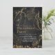 Este cartão de convite para festas chic e elegante do Dia das Bruxas apresenta um fundo preto com abóboras e folhas em ouro falso/falso. O verso apresenta um fundo dourado falso/falso com padrões geométricos a preto. Personalize-o para as suas necessidades. Você pode encontrar produtos correspondentes na minha loja.