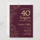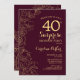 Convite de festas Dourado de Surpresa Floral Burgundy. Design de marrom moderno minimalista com sotaque botânico e letra de escrita tipográfica. Simples cartão de convite floral perfeito para uma festa surpresa na moda. Pode ser personalizado para qualquer idade.