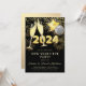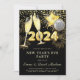 Um convite de véspera de Ano Novo moderno, com óculos de champanhe, balões e brilho com explosões de fogos de artifício em fundo negro. Folha de ouro falsa de Platina no verso do convite. Esta versão também está disponível como download digital.