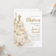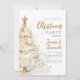 Convite Festa Dourada de Árvore de Natal Branco Elegante