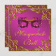 Convite Festa Dourada de Bola de Mascarada de Máscara Rosa