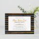 O convite de festas de Ano Novo deste janto apresenta faixas de bronze dourado e de aquarela prateada sobre fundo preto. Um quadrado branco no meio, oferece texto personalizado para seu convite de festas.