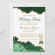 Cartão de Convite para o Partido de Feriado de Gato de Gato de Marble Agate Elegante Moderno Elegante Emerald Green e Dourado - Fundo Branco com Script Dourado. Vidro de Champanhe com Arco.