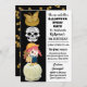 Um Convite de festas de Aniversário Bonito de Halloween para sua garota celebrando seu 5/Qualquer Aniversário. A ilustração apresenta abóbora de Halloween, borboleta, crânio decorativo, abóbora branca e uma garota fofa. No verso está um design correspondente. Escolha perfeita para a festa da garota com um tema Dourado. Facilmente personalizável com estilo de fonte/ formato de script / caligrafia. Clique no botão "Personalizar" para personalizar TEXT. Visite minha loja para encontrar produtos similares na minha loja de "halloweengallery". Ligação: https://www.zazzle.com/store/halloweengallery