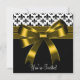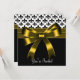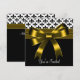 Convite de festa com design elegante de laço dourado e Fleur de Lis preto e branco. Este modelo de design funciona bem como convite para uma festa de aniversário, coquetel, festa de feriado, festa corporativa, formal de gala, baile de formatura, festa de aposentadoria, festa de formatura, despedida de solteira, festa de noivado, casamento, festa de Ano Novo e qualquer outra ocasião especial. Adicione seus detalhes na frente e no verso simplesmente escolhendo o botão laranja "Personalize!" para começar a adicionar os detalhes do seu evento, estilo de fonte, tamanho e cor da fonte e texto. Convites de festa com Fleur de Lis dourada. Por favor, observe que todos os designs de convite que você encontrará no Zazzle são gráficos impressos em papel liso sem joias, laços, relevos, dourados ou peças ou partes adicionais.