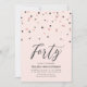 Celebre seu dia especial com este convite de festas mínimo de aniversário de 40 anos. Este design apresenta um script de na moda com letra "Quarenta" com um confete em forma de hexágono com combinação de cores rosa e rosa dourado. Há mais designs disponíveis no meu compro BaraBomDesign.