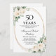 O modelo de convite de aniversário de casamento de 50 anos elegante apresenta uma moldura dourada e dois arranjos de rosas brancas. Todo o texto é editável.