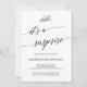 Este elegante convite de festas surpresa de caligrafia negra é perfeito para um evento simples. A design neutra apresenta uma carta minimalista decorada com tipografia romântica e caprichosa. Este convite pode ser usado para um aniversário, aposentadoria ou qualquer festa surpresa.