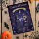 Convide convidados para um misterioso e sofisticado Mascarada do Jardim da Meia-Noite! Este elegante convite do Dia das Bruxas apresenta um conjunto de casais mascarados contra a folhagem escura e mística com tons de joias ricos. Perfeito para uma festa formal de figurinos e coquetéis, um evento gótico botânico ou uma reunião romântica de adultos. O design limpo e sem bordas está pronto para seus detalhes personalizáveis de festa!