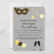 O Elegante Convite de festas Preto e Dourado apresenta balão de festa, máscara de rosto de festas de novo ano, champanhe e modelo de mensagem.Um design perfeito para enviar convites de novo ano para seus amigos e entes queridos.Clique no botão personalizar para personalizá-lo com seu próprio texto.