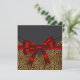 Convite de festa de leopardo preto e vermelho com laço vermelho lindo. Este convite de festa de leopardo vermelho elegante é facilmente personalizado adicionando os detalhes do seu evento, estilo de fonte, tamanho e cor da fonte e texto.