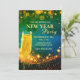 Elegante Convite de festas Dourado e Azul de Ano Novo - Champanhe Personalizado e Design de Sparkle Envie um convite espetacular para sua celebração! Este elegante convite de festas de Véspera de Ano Novo apresenta um fundo azul-da-meia-noite profundo, acentuado com brilhante brilho de ouro, fogos de artifício e uma proeminente flauta de champanhe. Ele inclui campos de texto personalizados para os detalhes do evento: "CONTABILIZAÇÃO DE PARTIDOS DO NOVO ANO", a data (31 de dezembro, ano e hora), o local (Casa do seu nome, Endereço) e as informações de RSVP. Perfeito para uma festa luxuosa de Ano Novo, evento corporativo ou contagem regressiva de feriados.