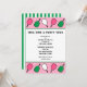 Convites criativos de festa ou evento de pickleball com linha dink engraçada, tema esportivo e padrão de remos rosa e verde para jogadores de pickleball.