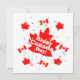 Convites com meu design de folhas de bordo, bandeiras canadenses, confetes e o texto "Feliz Dia do Canadá"!