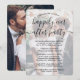 Convide familiares e amigos para uma celebração de casamento simples e elegante apenas para recepção com este convite moderno e sofisticado com sobreposição de 2 fotos. Toda a redação é simples de personalizar para uma cerimônia de renovação de votos, casamento subsequente, 1º aniversário, ou jantar pós-casamento. Personalize-o para incluir quaisquer detalhes de sua escolha, como data do casamento, código de vestimenta, RSVP, site, etc. (DICA DE COLOCAÇÃO DE IMAGEM: Uma maneira fácil de centralizar uma foto exatamente como você quer é cortá-la antes de fazer o upload para o site da Zazzle.) O design moderno minimalista preto e branco apresenta duas fotos do casal recém-casado, caligrafia de script manuscrita na moda e tipografia estilo máquina de escrever chique. Quer você tenha fugido, tenha tido um minimônio menor ou um micro-casamento, ou a celebração do seu dia especial tenha sido remarcada devido a um adiamento relacionado à pandemia de covid, a festa do "feliz para