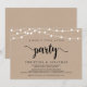 Linda festa Felizes para Sempre, cartão de anúncio / convite de casamento fuga, em kraft rústico de fazenda, design de luzinhas. Isso é perfeito para o seu casamento e festa de celebração pós-casamento. Adicione seus detalhes no mesmo tipo de letra / letra.