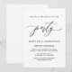 Marque o início do seu para sempre com elegância usando nosso convite de casamento contemporâneo com tema preto e branco "Festa Felizes para Sempre". Perfeito para casais que desejam estender sua alegre ocasião, este convite emana sofisticação com um toque de alegria, preparando o cenário para um evento memorável. Adornado com um tema de design de letra moderna atemporal, ele adiciona um toque de charme refinado às suas festividades. Criado por TeeshaDerrick, este convite promete capturar lindamente a história do seu amor.