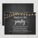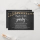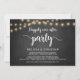 Linda festa Felizes para Sempre, cartão de anúncio / convite de Elopamento de casamento, em quadro negro de fazenda rústica, design de luzes de corda. Isso é perfeito para o seu casamento e festa de celebração pós-casamento. Adicione seus detalhes na fonte / letra correspondente.