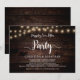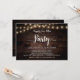 Linda festa Felizes para Sempre, cartão de anúncio / convite de casamento Elopamento, em madeira de fazenda rústica, design de luzes de corda. Isso é perfeito para o seu casamento e festa de celebração pós-casamento. Adicione seus detalhes na fonte / letra correspondente.