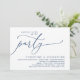 Anuncie e compartilhe seu final feliz com estilo com nosso design de tema azul naval romântico contemporâneo moderno (Festa de final feliz) cartão de convite para jantar de fuga, almoço, brunch, celebração de casamento. É ideal para casais que decidiram celebrar seu melhor dia. Com um design sofisticado e ainda divertido, este convite certamente estabelecerá o tom para um evento inesquecível. O cartão de convite apresenta um tema de design de roteiro moderno e minimalista, adicionando um toque de elegância atemporal à sua celebração. Projetado por TeeshaDerrick