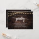 Linda festa Felizes para Sempre, cartão de anúncio / convite de casamento às escuras, em madeira de fazenda rústica, design de luzes de corda. Isto é perfeito para o seu casamento e festa de celebração pós-casamento. Adicione seus detalhes em letra / caligrafia correspondente.
