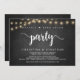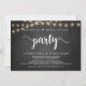 Linda festa Felizes para Sempre, Anúncio de casamento às escondidas / cartão de convite, em quadro de giz marrom rústico moderno, design de luzes de corda. Isso é perfeito para o seu casamento e festa de celebração pós-casamento. Adicione seus detalhes em fonte / letra correspondente.